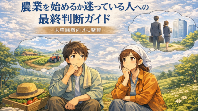 農業を辞めるか迷ったときの判断基準を、未経験者向けに整理。感情と現実を切り分けながら、後悔しにくい考え方のヒントを解説します。